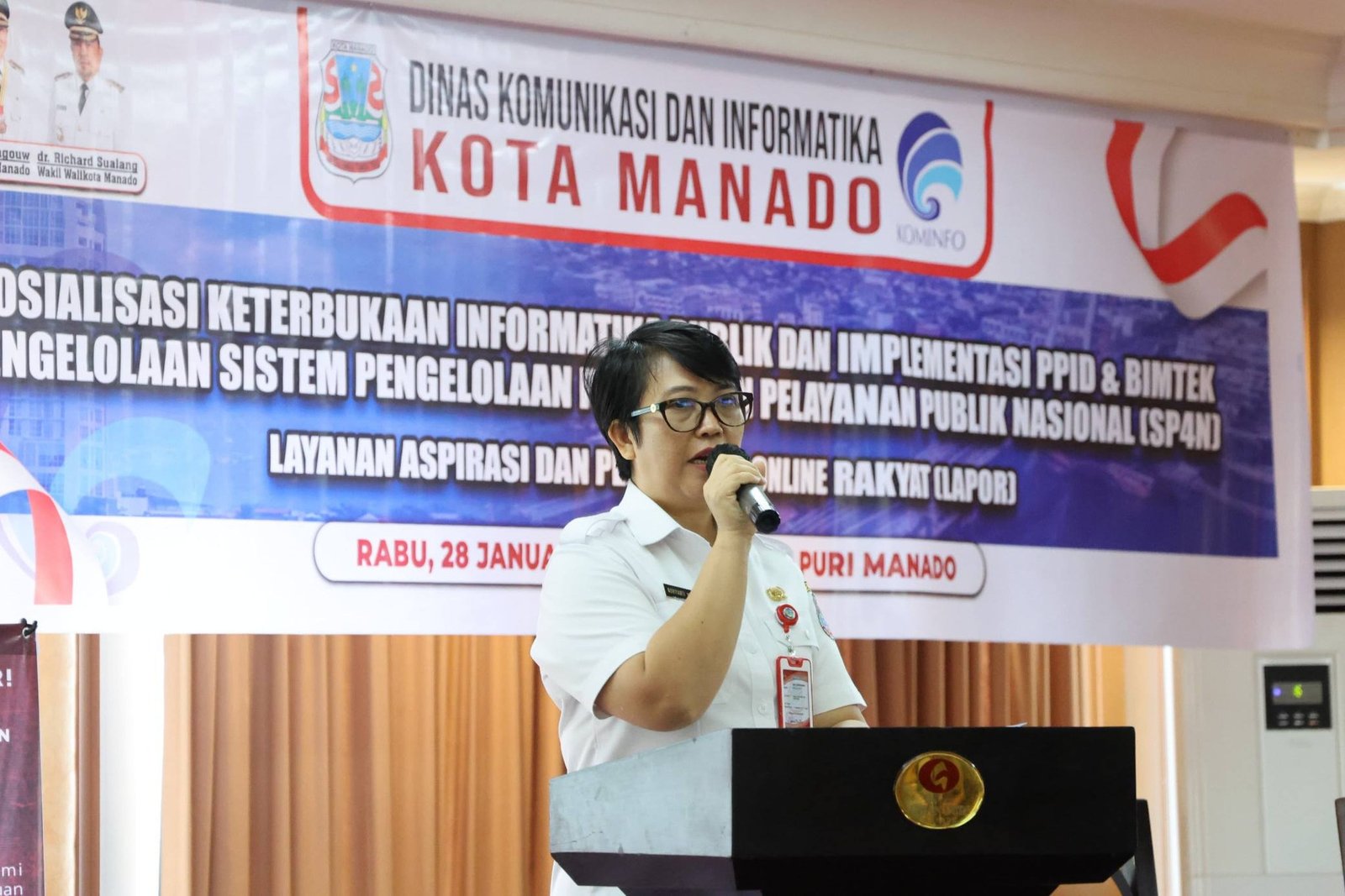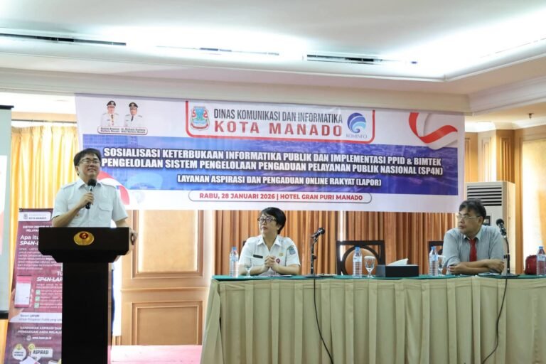 Manado,POPAYATONO.COM – Pemerintah Kota Manado melalui Dinas Komunikasi dan Informasi (Kominfo) menggelar kegiatan Sosialisasi Keterbukaan Informasi Publik dan Implementasi Pejabat Pengelola Informasi dan Dokumentasi (PPID) dan Bimbingan Teknis Sistem Pengelolaan Pengaduan Pelayanan Publik Nasional (SP4N) – Layanan Aspirasi dan Pengaduan Online (LAPOR).