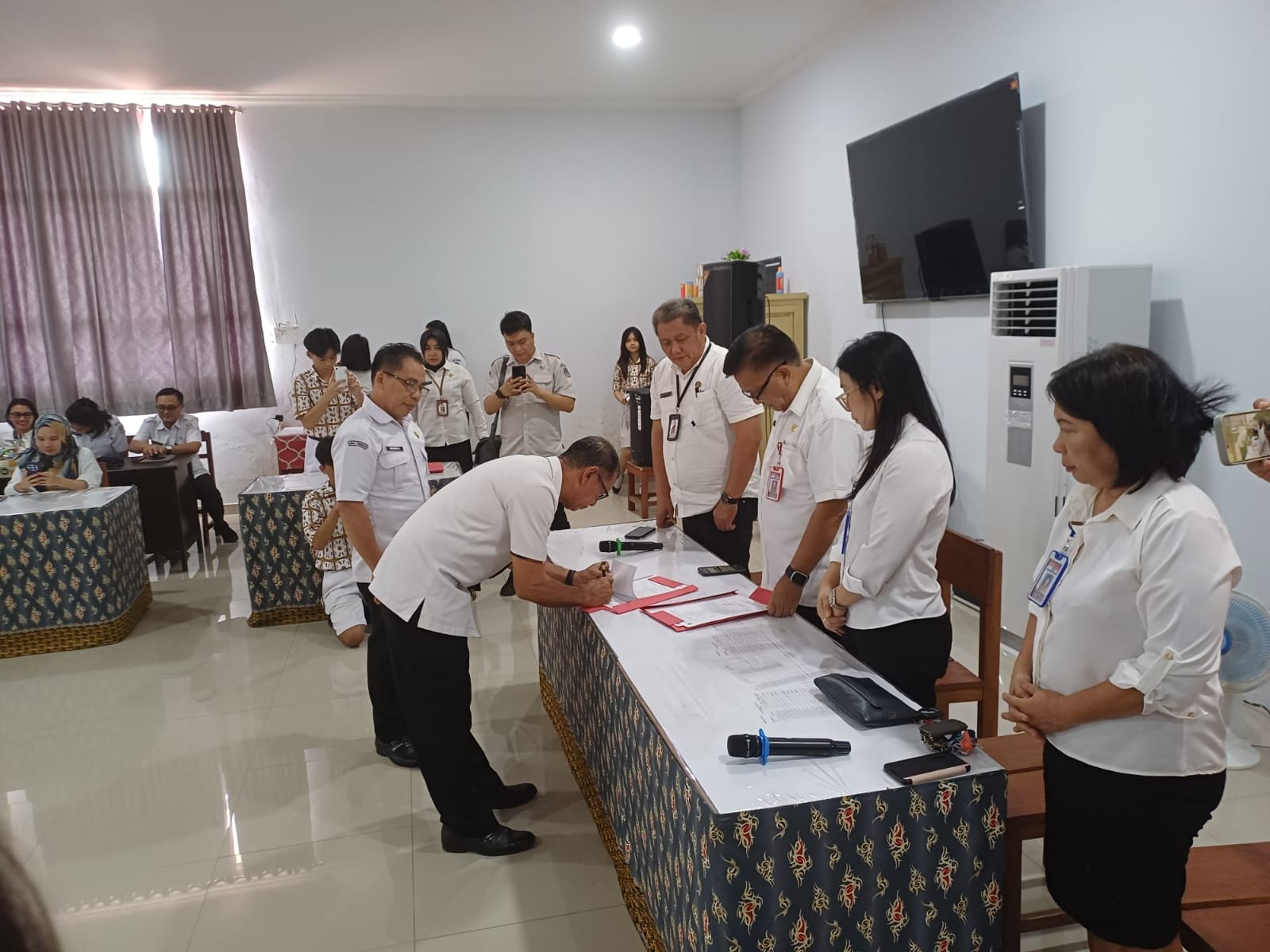 Dalam hal ini Dinas Pendidikan dan Kebudayaan Kota Manado Kepala Dinas Peternakan Bart Assa Melakukan Serah Terima Jabatan di SMP Negeri 1 Manado  Kepala Sekolah Lama Marvin Lolowang kepada Rahman Manggopa. Rabu,(11/03).