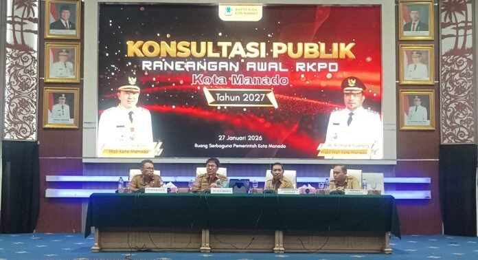 Manado,POPAYATONO.COM—Pemerintah Kota Manado menggelar Konsultasi Publik Rancangan Awal Rencana Kerja Pemerintah Daerah (RKPD) Kota Manado Tahun 2027, bertempat di Ruang Serbaguna Kantor Walikota Manado, Selasa (27/01/26).
