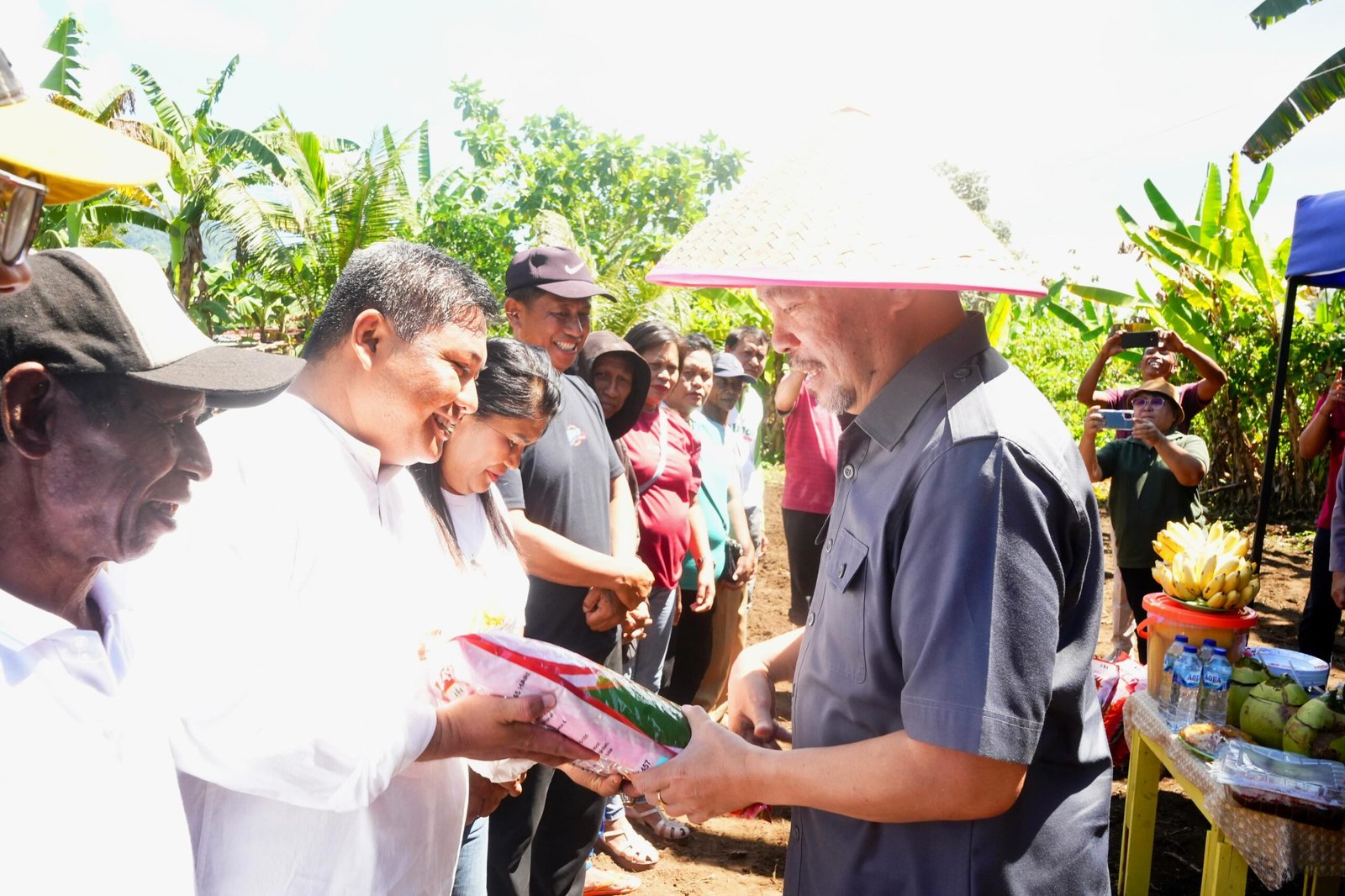 Wakil Wali Kota Manado dr. Richard Sualang saat membagikan Benih buat kelompok Petani.